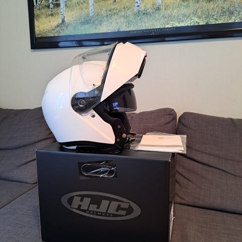 Fin MC hjälm med inbyggd mic och högtalare till mobil. Nypris 4500 Storlek L - XL