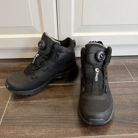 Med dubbar och vattentäta. God komfort i men tyvärr en halv/en storlek för små för mig.