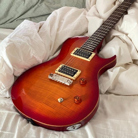 Mahoganykropp med quilt-mönstrad lönntopp, hals i lönn, greppbräda i rosewood, 85/15 "S" humbuckers.
