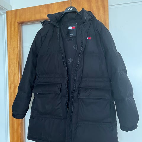 Svart, snygg, otroligt varm och skön vinterjacka från Levi’s. Köptes ny förra Vintern i New York för 2700kr och har bara används ett par gånger. Finns en liten skråma på ryggen men är något som absolut inte mörks vid användning! 100% dun!
