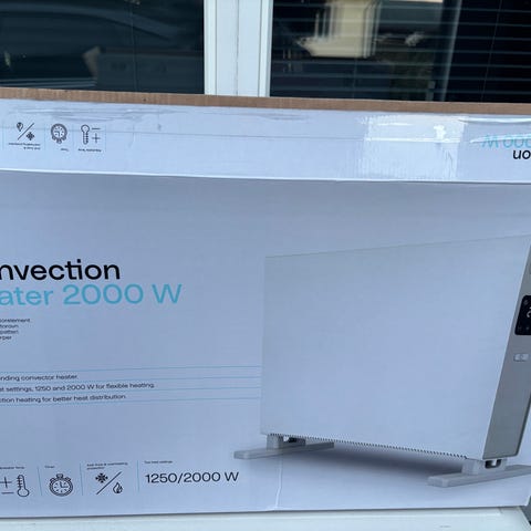 Prof konvektionsvärmare med effektlägen 750W, 1250W och 2000W. Fristående modell med fötter för placering på golv. Vit färg med grå detaljer. Avsedd för uppvärmning av inomhusutrymmen genom konvektionsvärme. Passar exempelvis som extra värmekälla i rum, kontor eller fritidsboende där eluttag finns tillgängligt.
