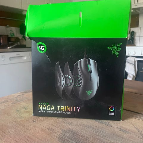 Razer Naga Chroma gamingmus i svart utförande. Musen är trådbunden och har ett antal programmerbara sidoknappar lämpade för till exempel MMO-spel. Säljes i befintligt skick.