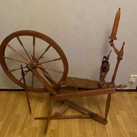 Trådrulleställ i trä med nåldyna