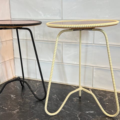 Snyggt retro sidobord i orange formgjuten plast. Finns visst bruksslitage men inget man tänker på när det står en härlig växt på.