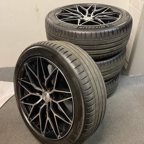 Säljer mina sommardäck till BMW. Däcken och fälgarna köptes nya i augusti 2025 för 15000kr