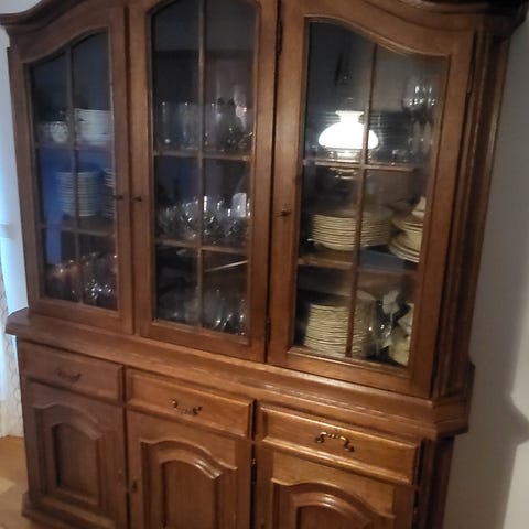 Vitrinskåp med belysning / sideboard trä brun med glasdörrar
