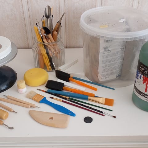 Nya och ”använda”oljefärger med luktfri lösningsmedel och linolja. Akrylfärgerna följer med på köpet.