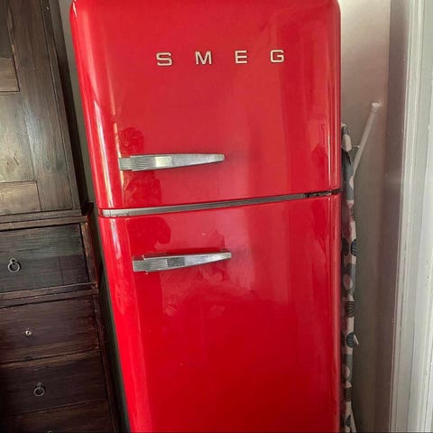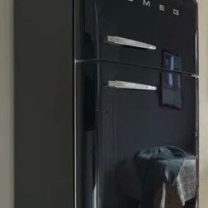 Smegs ikoniska kombiskåp kyl/frys i deras klassiska retromodell med inspiration från 50-talet. Modell FAB 30 där frysen är högst upp.