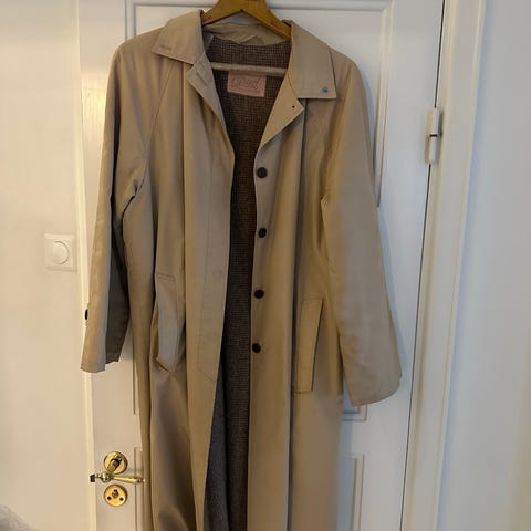 J. Lindeberg rock för herr i storlek 44. Rocken är grön och tillverkad i ull med slät ytfinish. Modellen har klassiskt slag, knäppning framtill med knappar samt flera fickor, inklusive bröstficka och sidfickor. Längden går ned över höfterna och ger ett mer formellt uttryck som passar till både vardag och mer uppklädda tillfällen under kyligare väder.