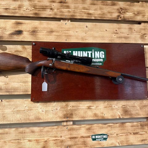 Piplängd på 61cm. Vapnet är väl använt och börjar bli sliten i blånering på pipan. Underbeslag har en del repor och en bit av bakkappan fattas.