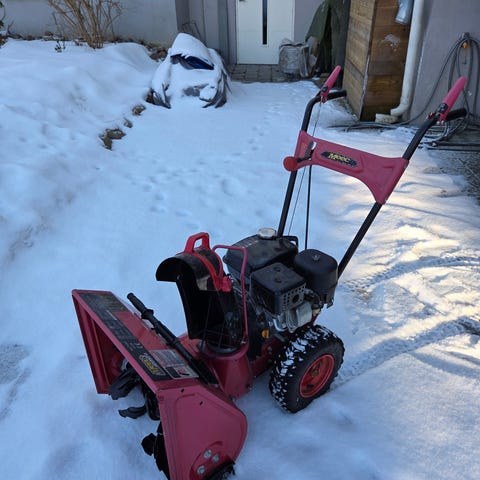 Sneslynge Hurricane, mrk. Asgatec SF 1600. eldriven i svart och röd färg. Modellen är utrustad med två hjul bak och ett handtag för manövrering. Utkastarröret är riktbart uppåt för att leda snön åt önskat håll. Snöslungan är avsedd för röjning av snö på mindre uppfarter, gångar och liknande ytor där en kompakt, eldriven maskin är lämplig.