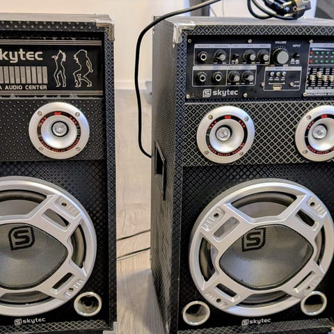 Yamaha A4115H högtalare i svart utförande. Modellen är märkt som amplifier/högtalare med anslutningar och reglage på baksidan, inklusive volymkontroll och strömbrytare. Enheten drivs med 230 V, 50/60 Hz. Passar som del i ett PA- eller ljudsystem där kraftigare ljudåtergivning behövs. Konstruktionen är lådformad med frontöppning och inbyggd hornsektion framtill.