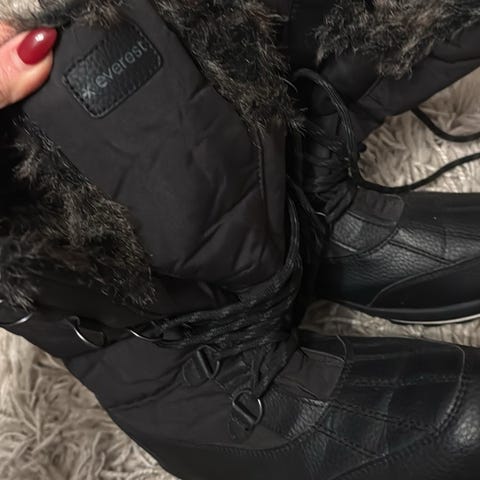 Everest vinterskor i kängmodell i storlek 40. Skorna är ljusbruna med snörning framtill och dragkedja på sidan för enklare av- och påtagning. Grovmönstrad yttersula i gummi ger grepp på hala underlag. Mjuk vaddering runt skaftet för ökad komfort. Fodrade. Skön innersula. Passar som vardagsskor under kallare årstid. Endast använda 1 gång. De är lite för breda för min fot. Finns på Södermalm.