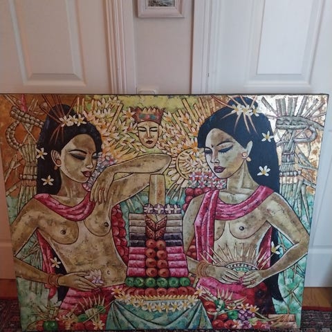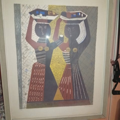 En stor tavla med Afrikanskt motiv gjord av konstnären Bandula Fernando.