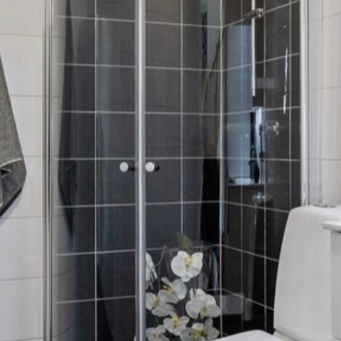 Duschhörna MEGINS 90x90 cm (skruv 87x87 cm), 2 st skjutdörrar med dubbla hjulpar på ovan- och undersidan, härdat glas, vit, utan botten, dvs placeras direkt på golvet