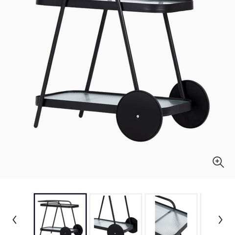 IKEA serveringsvagn i rostfritt stål. Vagnen har en slät ovansida som kan användas som extra arbetsyta eller avställningsyta i kök eller matsal. Under skivan finns en utdragbar låda för bestick eller köksredskap. Mitthyllan har integrerade hållare som kan användas för exempelvis flaskor. Nederst finns en utdragbar trådkorg för förvaring av större köksartiklar eller textilier. Vagnen är utrustad med hjul för enkel förflyttning mellan olika arbetsytor i hemmet eller i köksmiljö.