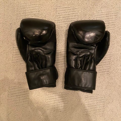 Inhandlades nya och har endast använts några månader. Har alltid spritat och torkat av invändigt efter varje pass samt lindat händerna.