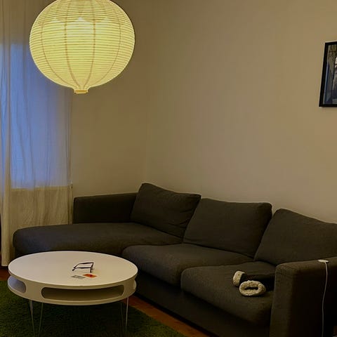 Cirka 1 år gammal soffa. Bra puff i dynorna, inga slitage förutom några fläckar efter användning.