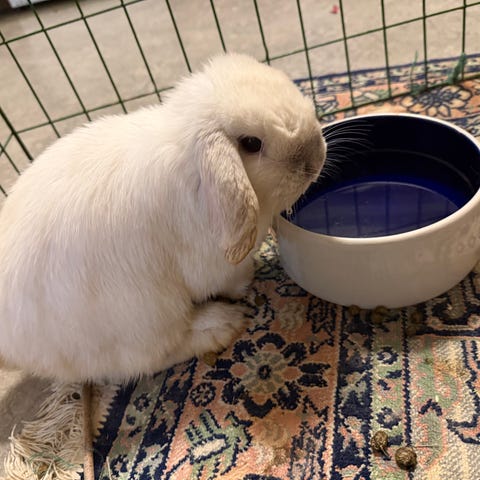 Hon är av rasen minilop och är riktigt trevlig, snäll och nyfiken hona. Älskar bli klappad och ligga i famnen. Riktigt fin färg och underbar stam. Har haft några kull tidigare. Är en bra mamma.
