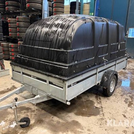 Släpvagnen har brukats för att dra en bil bakom en väghyvel, annars sparsamt använd