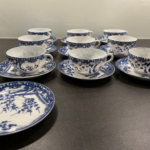 Skick: Mycket gott vintage skick. Inga nagg eller sprickor. Lätt krackelering i glasyren på vissa delar, vilket är normalt för åldern och del av charmen. Komplett set.