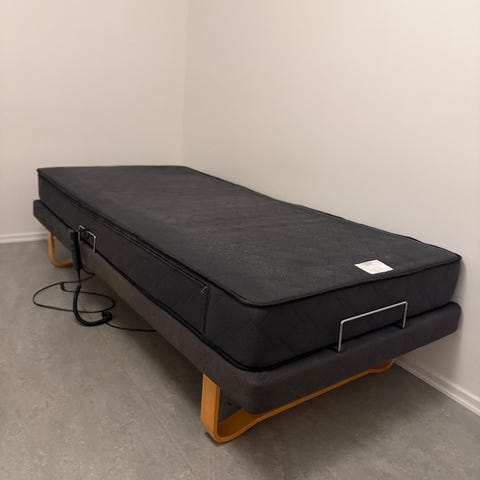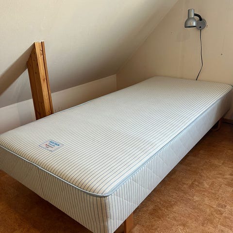 Två enkelsängar 90 cm, en med ben, en med medar. Soffa längd 190 cm djup 85 cm höjd 40 cm. Utdragssoffa äldre modell längd 180 cm djup 54 cm höjd 45 cm skänkes mot avhämtning på Aspö.