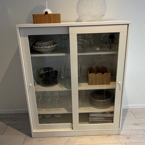 Säljer mitt fina fina vitrinskåp från Jysk som inte längre går att köpa. Säljer pga av flytt och inte har någon plats till den.