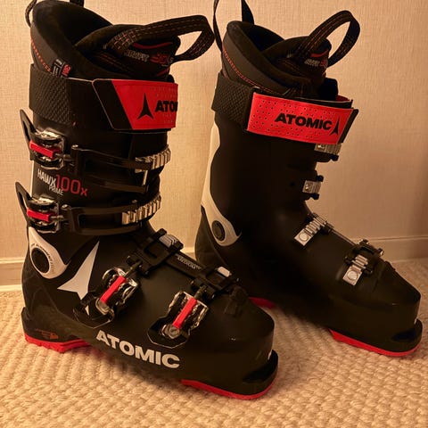 Atomic Hawx Ultra 110 S alpina pjäxor i mörkblått och rött.
