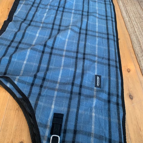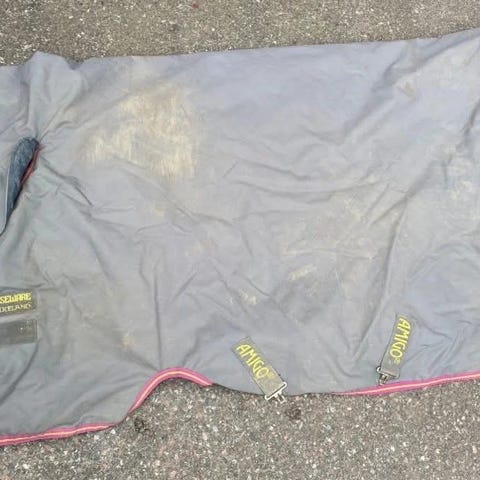 Små revor bak efter hagkompis (se bild), men täcket har inte läckt – hästen har inte varit blöt under.