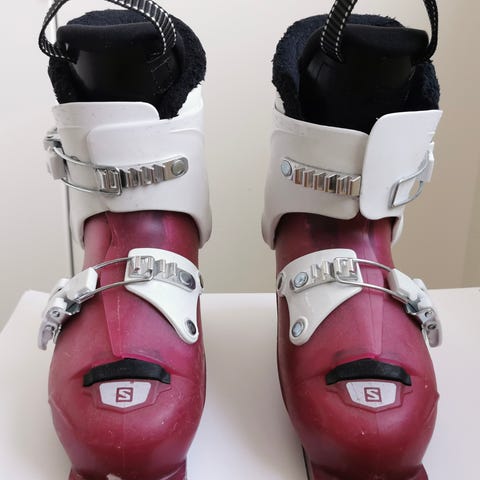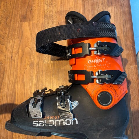 Salomon 520 htc pjäxor i hård plast med vit yttersida och detaljer i rött, grönt och gult. Innerfoder i grönt tyg. Modellen har bakre insteg och spänns med överliggande rem/spänne framtill. Sulor med röd gummibeläggning för grepp vid gång. Passar för utförsåkning/alpinskidåkning med kompatibla bindningar. Storlek och exakta tekniska specifikationer framgår inte av bilderna utan behöver kontrolleras på plats eller mot märkning i pjäxorna.