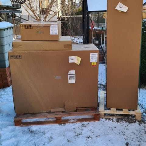 Ugnen förvaras i potatislådor.