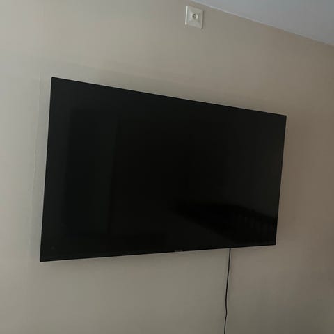 Dock saknas bordsstativ och original väggfäste. Hemmagjort väggfäste medföljer (som fungerar finfint). Fjärrkontroll medföljer.