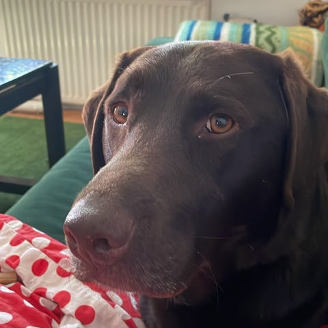 Jag har en trevlig hund som heter Banjo, en blandning av golden retriever och labrador. Han är snäll och glad. Lite för glad när vi går ut på promenad. Han vill väldigt gärna komma nära andra hundar och han är stark, lite för stark
