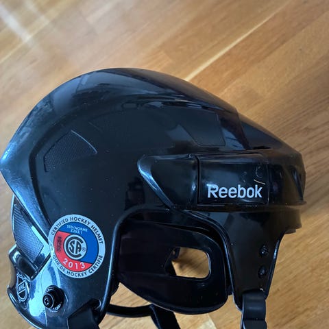 Jofa hjälm för barn i hårdplast med justerbar passform. Två färger syns på bilderna: grön och svart. Hjälmarna har ventilationshål upptill, hakrem samt reflextriangel bak för ökad synlighet. Passar för skridskoåkning och annan vinterlek på is. Storlek uppges som one size för barn.