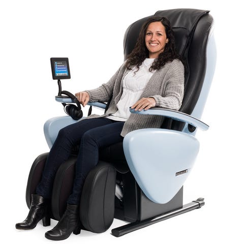 Svart 10-punkts massagesfåtölj m fotpall