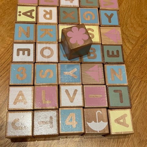 Pastellfärgade byggstavar från Micki. 150 st.