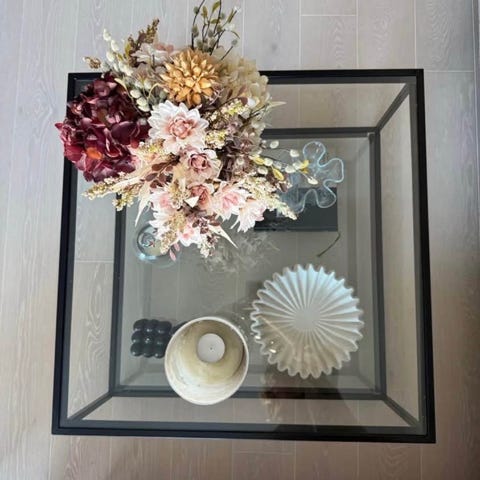 Stora bordet är 80cm i diameter med glasskiva