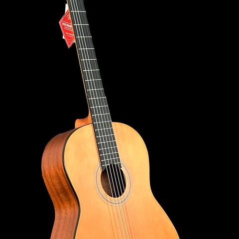 Hals: Mahogny i ett stycke, greppbräda i rosenträ, 12” radie, 24,75” mensur, 43 mm sadelbredd, moderat ’59-profil