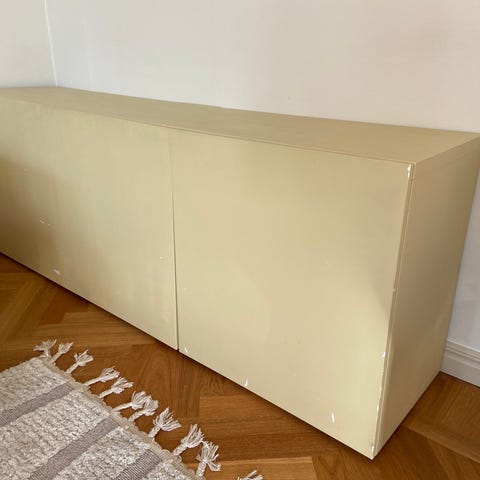 Tv-bänk IKEA Bestå. Fint skick förutom defekterna på höger kortsida enligt bild.