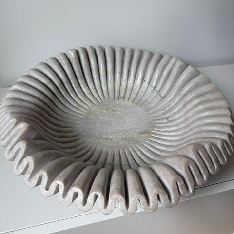 Avlångt kruka i robust betong material med en båtformad design. Lämplig för dekoration eller som planteringskärl med jord och stenar. Färgen är grå/naturfärgad.