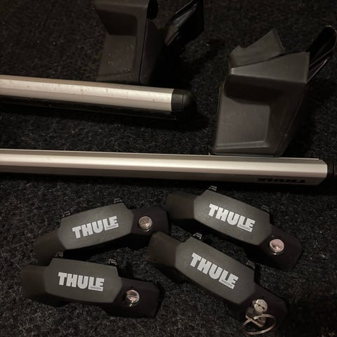 Thule takräckesfötter med tillhörande monteringssatser för bil. Har används till en Toyota Avensis 2018 T27