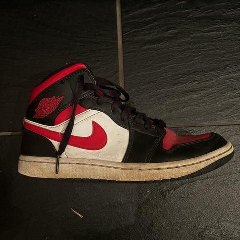 Jordan 1 Mid ”Noble Red” i storlek 42,5. Väl använda men gott skick