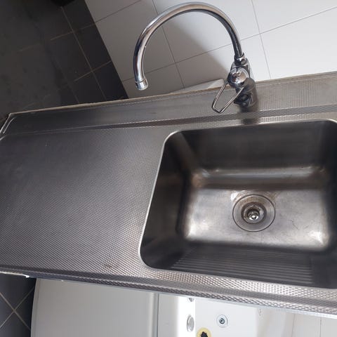 Rostfri diskbänk med köksblandare