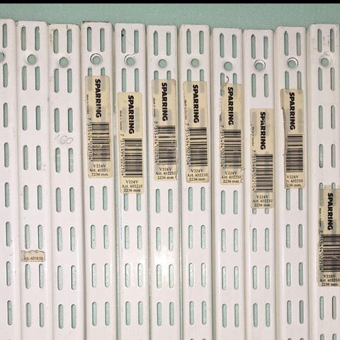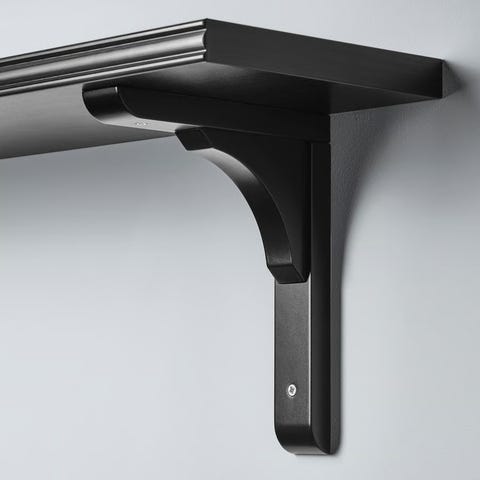 Svartmålade konsoler i fint skick. Att sättas underhyllor på vägg.