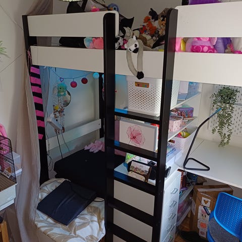 Säljer en stabil och praktisk loftsäng med integrerad arbetsplats under. Perfekt för barnrum eller mindre rum där man vill utnyttja ytan maximalt.