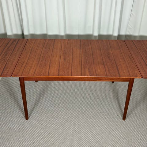 Antikt bord och fyra köksstolar från 60-talet gjort av teak. Säljes pga flytt. Köpt på Retro vid Nytorget. Bordet och stolarna kan även säljas separat. Exakta mått har jag inte till hands.