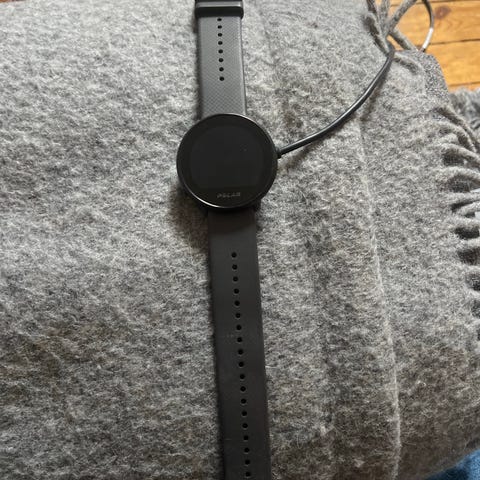 Polar Ignite 2 pulsklocka i svart med silikonarmband. Klockan har rund urtavla med pekskärm och optisk pulssensor på baksidan. Justerbart armband med klassiskt spänne. Medföljande USB-laddkabel för laddning via dator eller nätadapter. Lämplig för träning och vardagsanvändning med aktivitetsmätning och pulsmätning direkt på handleden.
