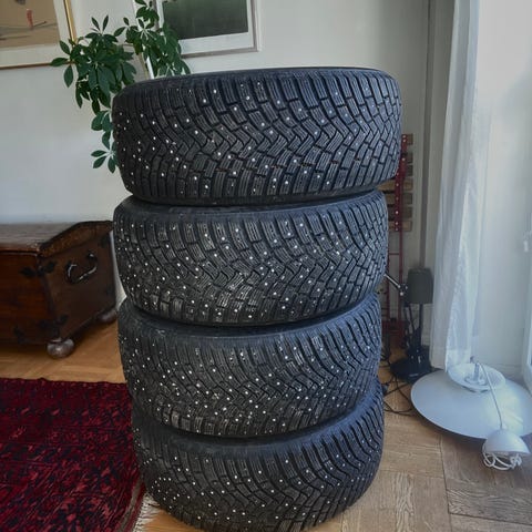 Har suttit på Volvo XC40 (elbil) en vinter, så fint skick med ca 6mm mönsterdjup. Tvättade och fria från sten.