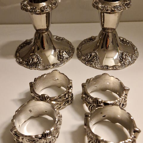 Bägare och likörkoppar men främst för dekoration kanske. Alla är nysilver och fint mönstrade. Har endast stått i vitrinskåp. Behöver dock poleras.