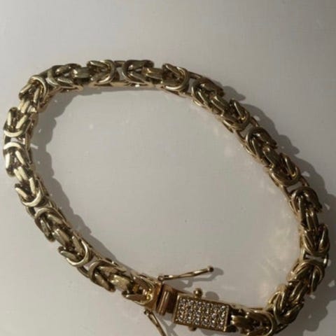 Jag säljer en jätte fin kejsarlänk 18k äkta svenskt guld, den har 6 stenar i låset, låset går inte att öppna men man kan få upp den med en nål, men annars jätte fin kedjan,